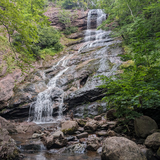 As we leave Cheticamp behind we climb into the hilltops and get to see the road we just traveled as we stop at MacIntosh Brook Trail Head for another quick hike along a brook leading to a small waterfall.
